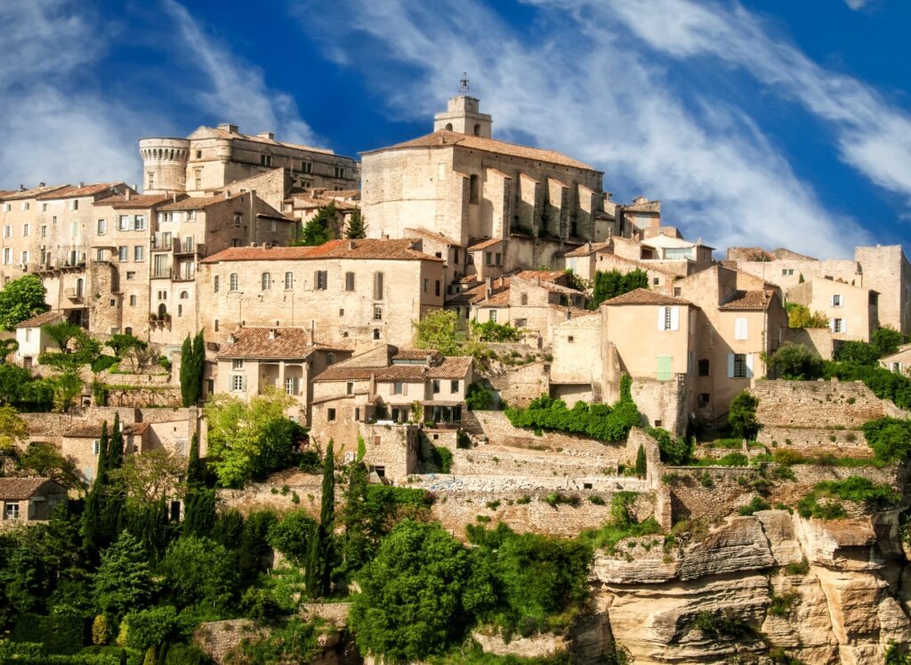 Aujourd’hui, vous allez découvrir quelques-uns des plus beaux villages perchés du Luberon. C’est une journée de vélo en montagnes russes qui dévoile, à chaque virage, de vastes panoramas de Provence : Gordes, en équilibre sur son éperon rocheux, ses maisons en pierre dorée couronnées par un château Renaissance ; Roussillon et ses maisons enduites d’ocre aux mille nuances ; Bonnieux et ses deux églises, aux confins du Grand et du Petit Luberon ; enfin Lacoste et son château, toujours associé à la figure du marquis de Sade.