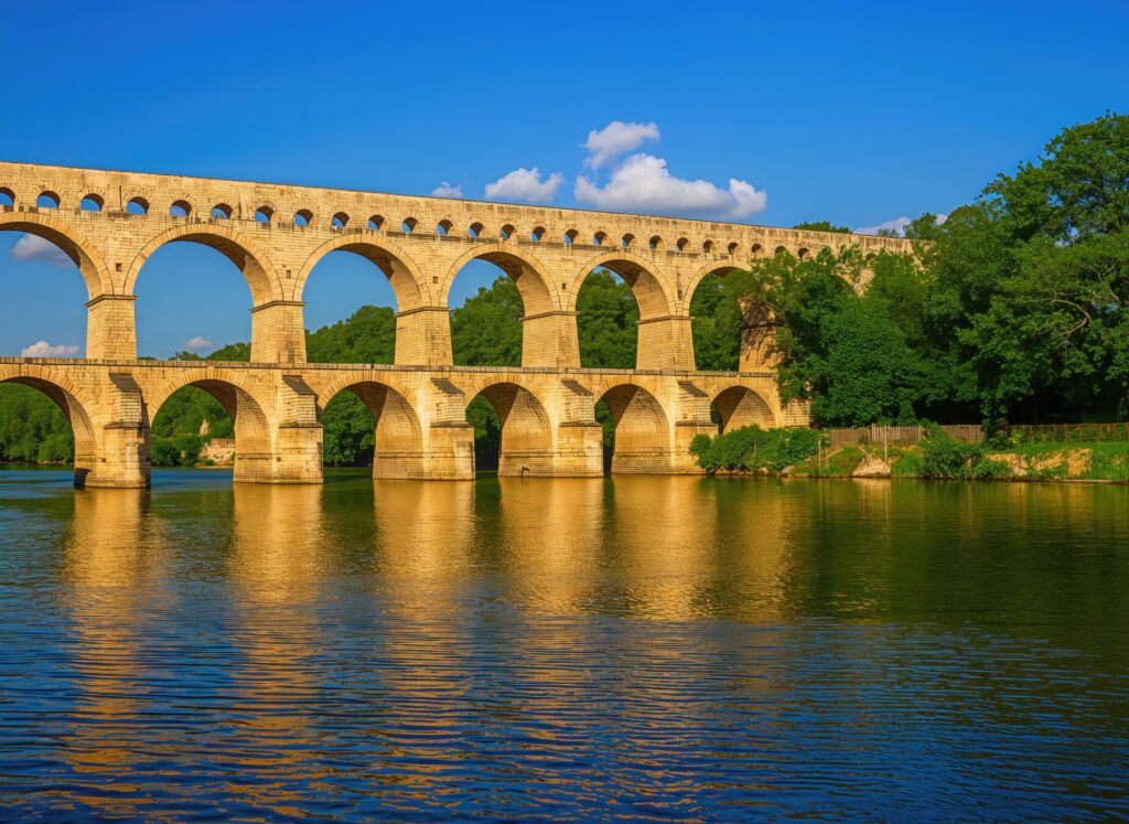 Avec le mistral en allié, vous mettez le cap vers le sud. Premier temps fort : le Pont du Gard, impressionnant aqueduc romain classé au patrimoine mondial, dont les arches monumentales dominent le Gardon. Une pause s’impose au bord de l’eau pour apprécier ce chef-d’œuvre d’ingénierie antique.