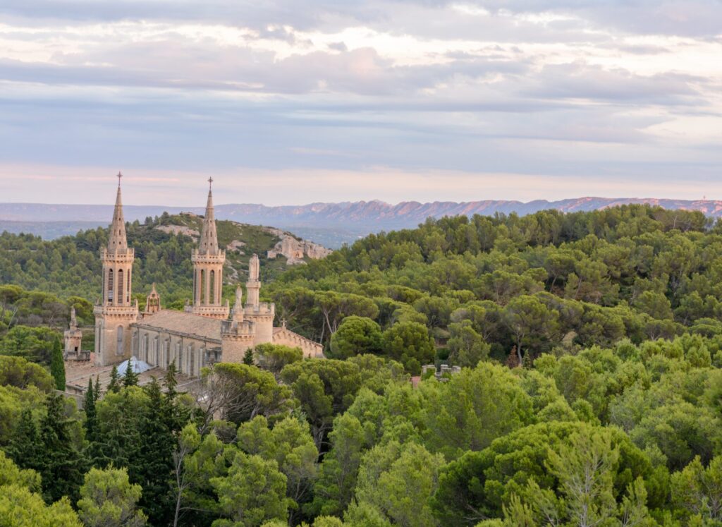 Premiers coups de pédale entre la Durance et le Rhône, sur des routes bordées de vergers. À Barbentane, le château veille sur le village, avant l’entrée dans le massif de la Montagnette. Le terrain alterne petites routes et passages en garrigue, entre oliviers et pins. Arrêt possible au monastère de Saint-Michel de Frigolet. L’arrivée à Fontvieille se fait dans une atmosphère provençale typique, associée à l’univers d’Alphonse Daudet et de ses Lettres de mon moulin.