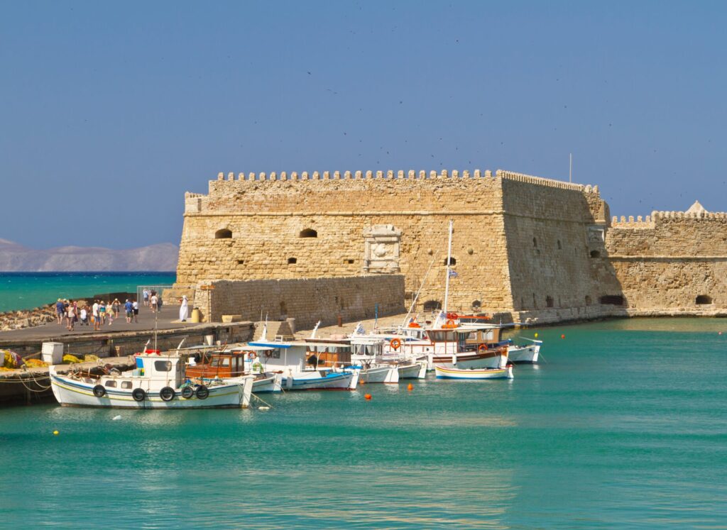Arrivée individuelle dans la capitale crétoise, fondée par les Arabes au IXe siècle, fortifiée par les Vénitiens, transformée par les Ottomans. Selon votre horaire de vol, la vieille ville se parcourt à pied en quelques heures : le port vénitien dominé par la forteresse Koules, les fontaines Morosini et Priuli, les ruelles commerçantes du quartier historique. Pour les amateurs d’archéologie, le musée archéologique d’Héraklion abrite la plus grande collection d’art minoen au monde. Le soir, les tavernes du vieux port donnent le ton méditerranéen du voyage.
