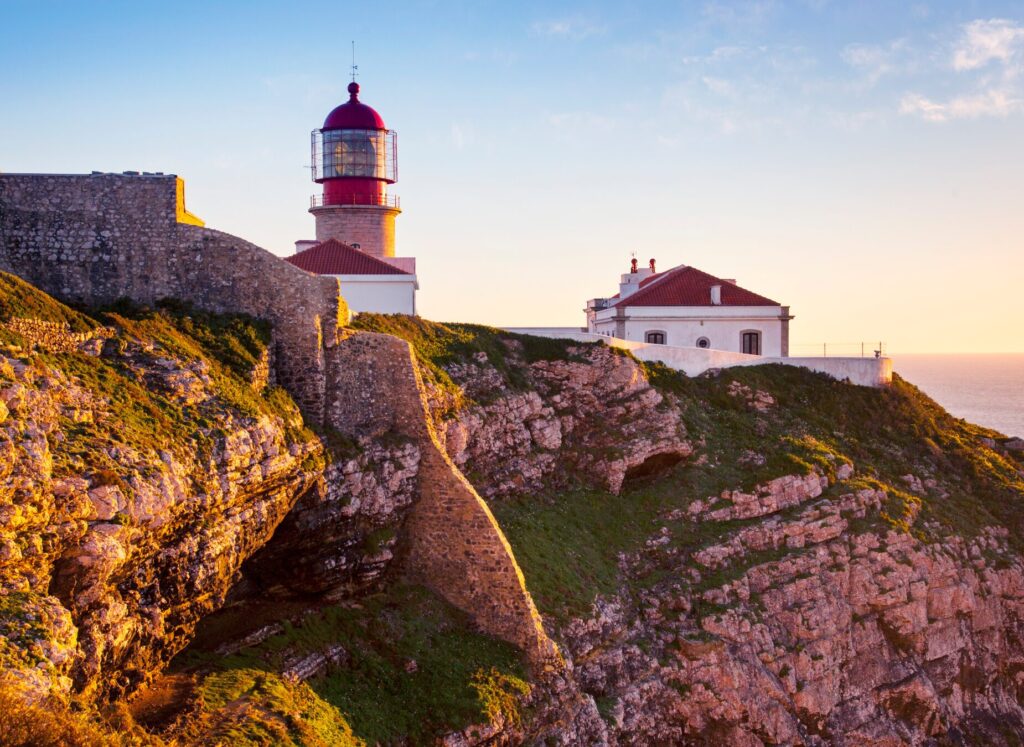 Vous quittez Silves pour vous diriger vers la pointe sud du Portugal. La route vous fait longer la rivière Arade avant d’entrer dans les contreforts de Monchique, avec ses collines boisées et ses fermes isolées. Vous traversez de petits hameaux typiques avant d’arriver à Odiaxere, au cœur de l’Algarve occidentale, réputée pour ses paysages sauvages. En approchant de Sagres, la route longe l’Atlantique et offre des vues spectaculaires sur les falaises et la mer. Vous découvrez la forteresse de Sagres et les falaises de Cap Saint-Vincent, point le plus au sud du Portugal et d’Europe, ainsi que le célèbre phare, l’un des plus puissants du continent.