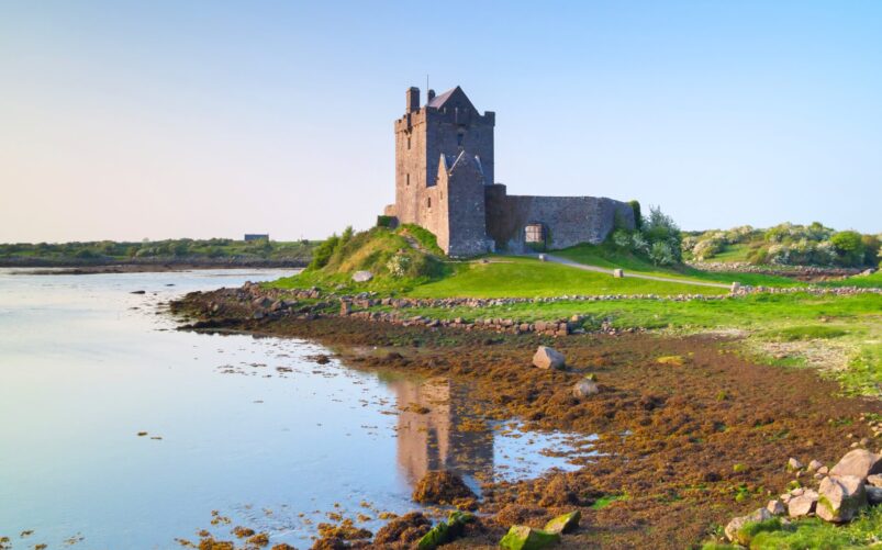 Plus au nord, le Connemara révèle un visage plus ouvert et minéral de l’ouest irlandais. Depuis Galway, les itinéraires longent les rives du Lough Mask, traversent les montagnes Partry et la vallée de Delphi, puis se déploient sous les silhouettes de granit des Twelve Bens. Clifden, petite capitale culturelle du Connemara, sert de point d’ancrage avant de rejoindre les routes côtières menant au port de Rossaveel et aux îles d’Aran. Sur Inis Mór, le paysage se résume à l’essentiel : murets de pierre, forts anciens, routes étroites et horizon atlantique.